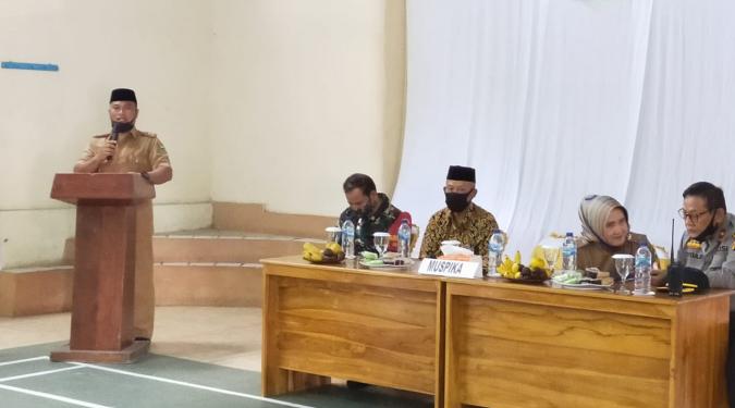 Senin, 10 Agustus 2020, Pelantikan Perangkat Desa di Desa Bojong. Sekmat Kecamatan Cilimus sedang memberikan sambutan.
